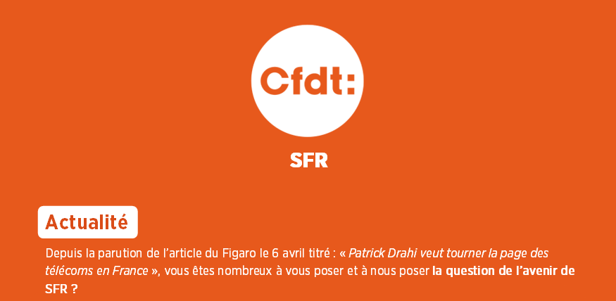 Vente de SFR : la CFDT veut éviter une casse sociale